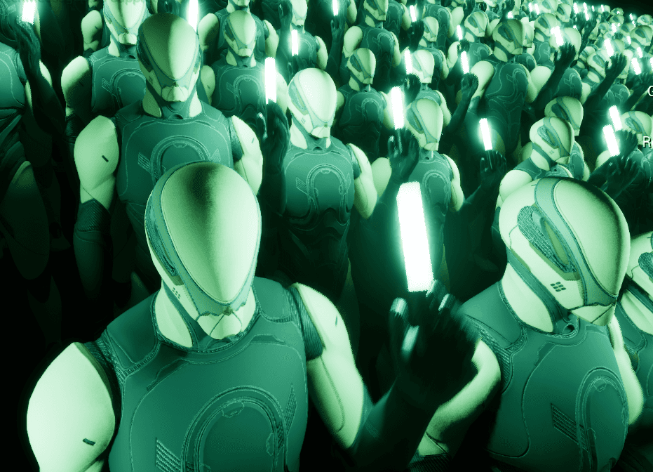 However, due to reasons like performance limitations and cost of implementation, most scenes with penlights are created without high-fidelity audience models, and/or real, physical-based lighting that matches the impact like real life.