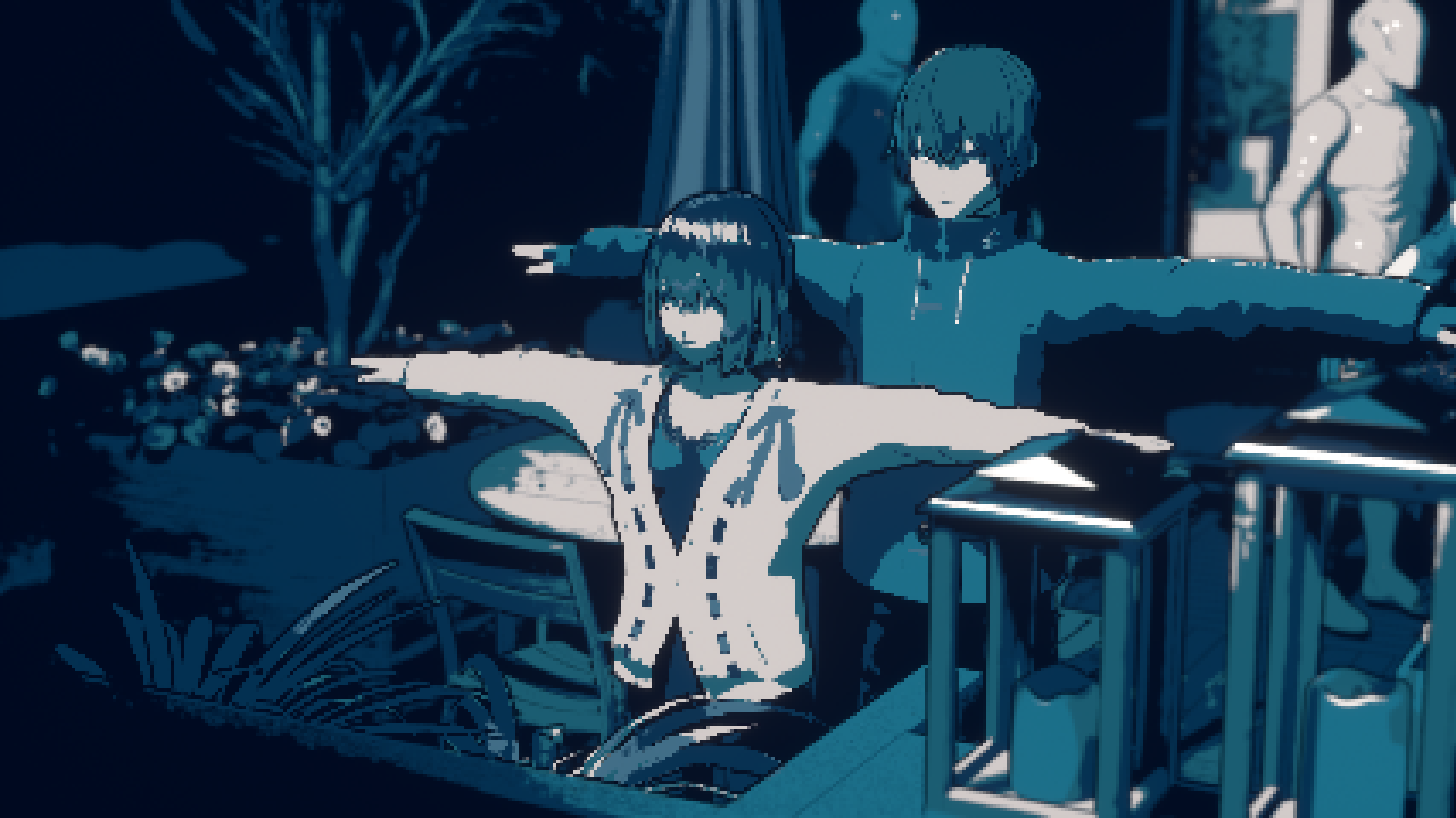 I was interested in the visual design of the mystery-solving game Urban Myth Dissolution Center, which combines monochrome pixelated retro style with some 3D-esque visual effects, like depth of field and bloom.