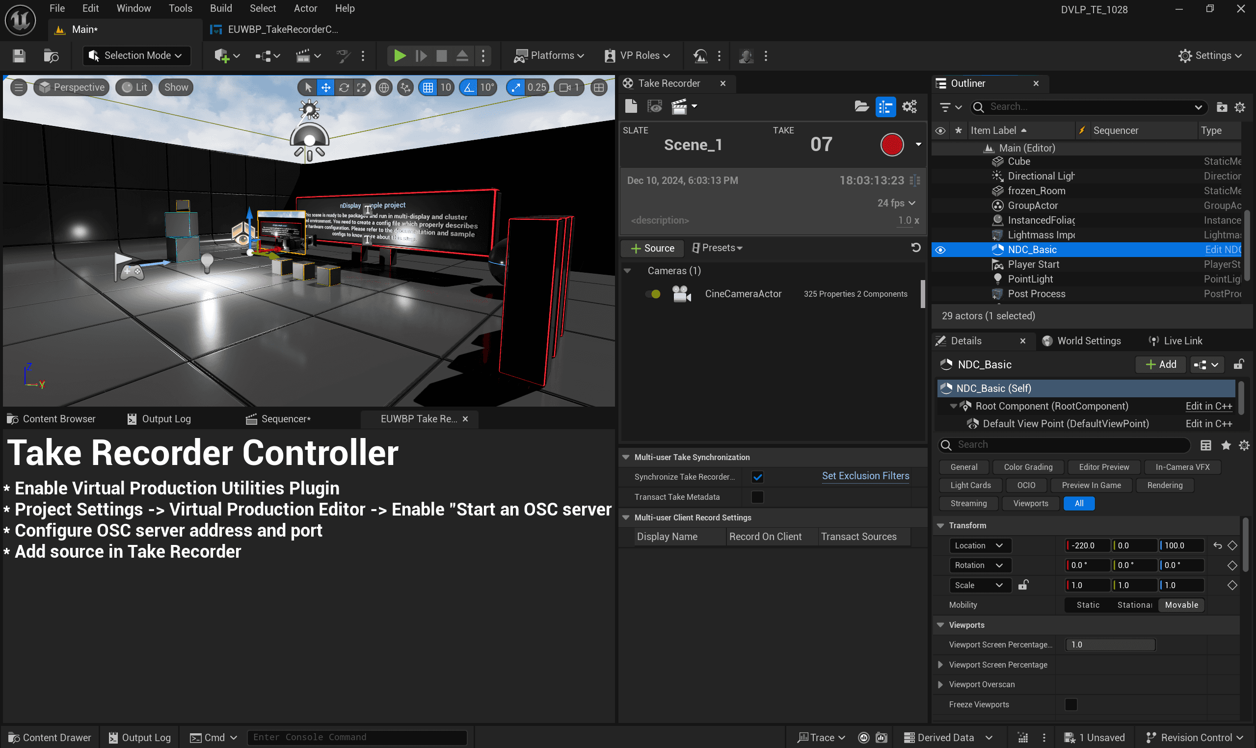 The Take Recorder Controller is used to allow for controlling the Take Recorder in Unreal Engine. This allows Unreal Engine to be synced with Blackmagic Hyperdeck in starting/stopping recording using an Elgato Stream Deck. This plugin is a part of the bigger setup that we use to record the footage from the cinecamera actor in Unreal Engine to Hyperdeck along with time code.